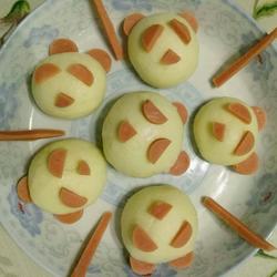 4. Let the steamed buns cool and cut them in half crosswise with a fruit knife and stuff them.Use "ear".