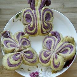 17.Picture of the finished product of steamed purple sweet potato butterfly buns.
