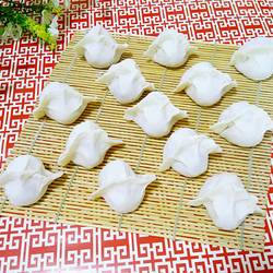 12. Wrap all the dumplings at once, dip some flour on the bottom of the dumplings, and place them on the bamboo curtain