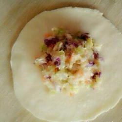 5.Put the chopped meat into a basin Inside, add: green onions, ginger juice, cooking wine, a little salt, start stirring in one direction, and then add purple cabbage, cabbage, carrots, pepper, salt, oil, continue stirring, be sure to stir evenly