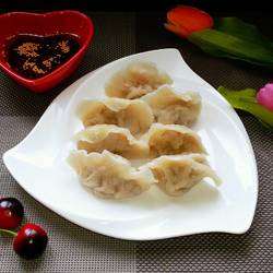 13.The delicious dumplings are out of the pot, and then dipped in the chili bowl sauce to taste great.