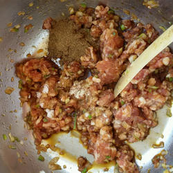 7. Add a little pepper, thirteen spices, a little sugar and chicken essence.Stir evenly in one direction.