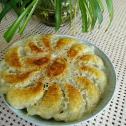 10. The bottom of the dumplings forms a thin crust, golden brown, and finally inverted on a large plate.Just flip it over on the pan.
