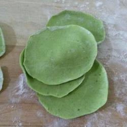 1.Make the spinach juice and mix it with the flour.After the dough has risen, pull it into dough and squeeze it out