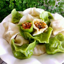 1. Beat spinach into juice and make dough, then make a piece of raw dough.Cover and set aside to wake up