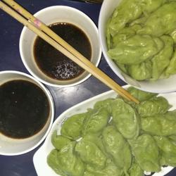 1. To knead the noodles, use a food processor to add a little water and add appropriate amounts of spinach to make a uniform spinach juice for kneading the noodles! The dough should be firm, so that the dumpling wrappers won’t stick to the chopping board easily! The dumplings are well shaped!