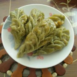 2.Add the squeezed mugwort juice to 300 grams of flour and knead it into a dough and set aside.