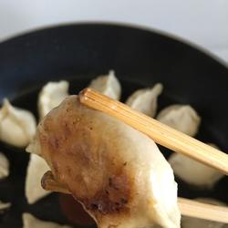 2.2.Fry the dumplings until the bottom is golden brown Add water from time to time, about one third of the height of the dumplings, up to one half of the water.