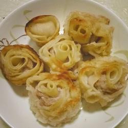 The key to seasoning the pork filling is that the rose dumplings are thicker.After frying, add some water to boil