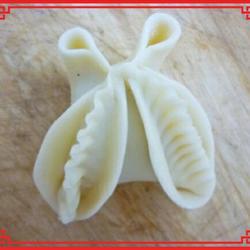 2. Roll up both sides of the dough, leaving the small half unrolled.