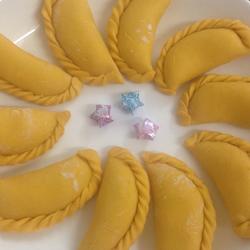 1.Handmade dumpling wrappers with pumpkin puree and noodles