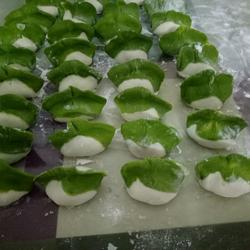 2.Use spinach juice to knead the dough, and use water to knead one portion of the dough normally, so that there is one portion of dough of each color