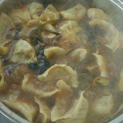 4. Turn on the heat, add oil, add shredded ginger and stir fry the meat slices, then add Cabbage and frozen tofu.Add appropriate amount of salt.stir fry.ceasefire.Put an appropriate amount of water in a steamer, add kelp, fungus, and vermicelli.Five minutes after opening, add the fried meat and vegetables.After half an hour, cook the dumplings.Finally add the seasoned coriander and ginger.OK! Very very fragrant.