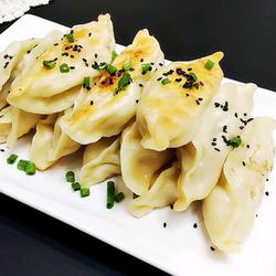 18.Sprinkle with green onions and black sesame seeds, and the delicious pot sticker dumplings are ready! Here’s a picture of the finished product!