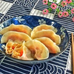 9.Start making dumplings, put the tomato and egg fillings on the dumpling wrappers