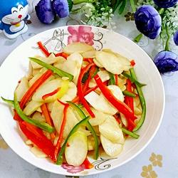 2.Peel the skin of the wild rice and cut into thin slices.Cut the green and red peppers into shreds and mince the garlic into minced garlic.