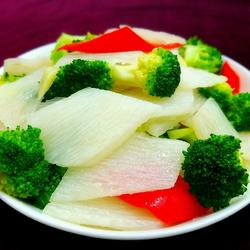 9. When the yam is about eight ripe, add the broccoli and continue to stir-fry until Stir-fried