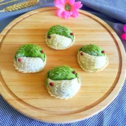 • 14.The green dough is also rolled out and wrapped into the same dumplings.Place the two dumplings together with the edges facing outward