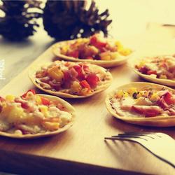 3.Sprinkle with diced colored peppers, chopped mozzarella and chopped bacon.