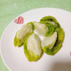 2. Divide the flour into two parts, add vegetable juice to one part and knead well, and knead the other part to warm water.OK, let it rise for a while and set aside.Chop the pork into small pieces, mince the onion and ginger, chop the Chinese cabbage, blanch it in water, cool and squeeze out the water, add the pork, cabbage, onion and ginger, soy sauce, salt and walnut oil, mix well.