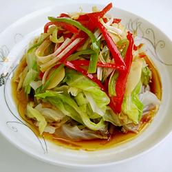 11.Pour the stir-fried chili shreds and the oil in the pot on top of the cabbage