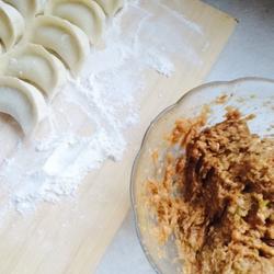 3. Chop the filling and mix it with the dough first.Let the dough rest for a while.When kneading the dough, put an egg in the dough and add some salt.When the dumplings are cooked, they will not stick or become rotten