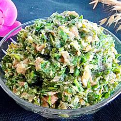 Boil shepherd's purse with oil Water to preserve the green color of shepherd's purse.Don't squeeze out the water to make it too dry.Stir more in the direction.