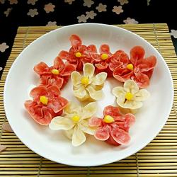 15. Put cooked corn kernels in the middle to make the flower center, steamer Brush oil on the grate, add dumplings, steam in boiling water for eight minutes.