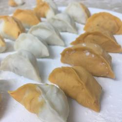 5. The two kinds of noodles together make the dumplings more beautiful., wrap the white flour cake with carrot flour cake