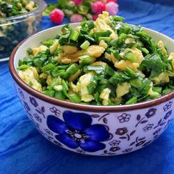 6. Put the leeks and eggs into a large bowl, add light soy sauce, oil, and MSG