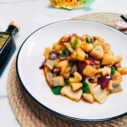 This sauce is sweet and sour, so there is no need to add sugar and vinegar.It is generally salty, so add a little light soy sauce according to your taste.The whole process is on high fire, stir-fry quickly.