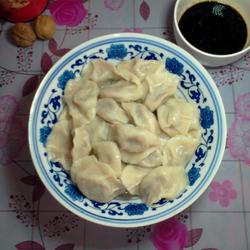 10. Bring the water to a boil and add the dumplings.Use a spoon to gently push the bottom of the pot twice to prevent them from sticking to the pot.Cover them After the pot is boiled, put some cold water on it, then put the cold water on it again, and do this three times.Turn the pot back on and see if the dumplings are cooked.Remove from the pot and put on a plate
