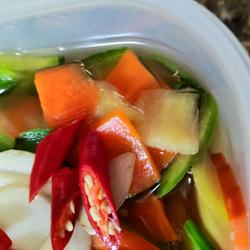 5. Squeeze the water from the pickled radish into a clean container, and then put it in Chopped ginger, garlic, and spicy millet.