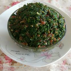 6. Squeeze out the water from the chopped alfalfa, put it together with the flavorful minced meat, and then Add appropriate amount of cooking oil, salt and sesame oil.