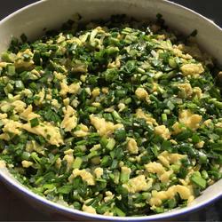 The oil has already been added when frying the eggs, so when mixing the stuffing, only Just put some sesame oil and add vermicelli to prevent the leeks from losing too much water when exposed to salt