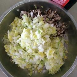 2.Wash the mushrooms, blanch them, and mince them.Wash and mince the baby cabbage as well