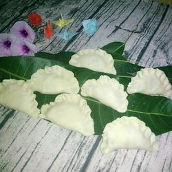 13. First pinch out a corner on the left side of the dumpling with your hands, and then pinch another corner.