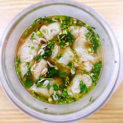 11. Finished product, chop coriander and green onion, season with soy sauce and mature vinegar, add a spoonful of soybeans Sauce and shrimp skin, then pour a spoonful of noodle soup to mix the soup base, and then put the cooked wontons in, perfect ~ tastes good ~