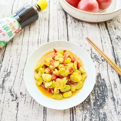 1. Prepare ingredients: wash tomatoes and cut into pieces, peel broad beans