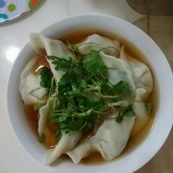 10. Add water to the pot.After the water comes, you can cook the dumplings.Below are the cooked dumplings , put some light soy sauce and coriander in the bowl