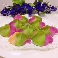 3.Add a little salt to the flour, pour in the squeezed juice and mix with the noodles