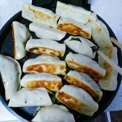 5. Brush the electric baking pan with oil, code the dumplings, and then pour half a bowl water, cover it and start manganese.When the water is almost dry, open the lid and fry until all three sides are golden brown.
