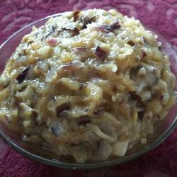5.Add chopped mushrooms and chopped onions and stir evenly