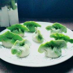 The spinach juice dough is larger than the white dough.The dumplings made look better.