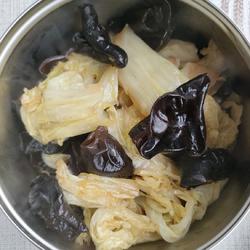 4.Add cabbage, fungus, white sugar and mature vinegar