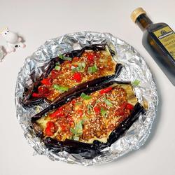 2.Put a piece of tin foil in the air fryer, put the eggplant on it, brush with a layer of oil, and bake at 170°C for 25 minutes