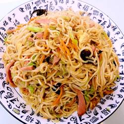 How to make fried noodles with eggs, ham and vegetables