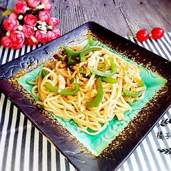8.Cut out the noodles and put them in the shredded green pepper chicken