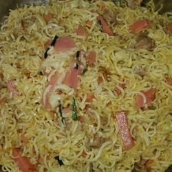 How to make fried noodles with diced luncheon meat