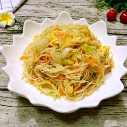8.Add carrots and cabbage and stir-fry until raw and soft